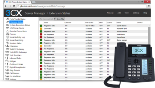 Étant donné que 3CX PBX fonctionne sous Windows, il est facilement installé et géré par les administrateurs informatiques de Windows sans avoir besoin de compétences spéciales en télécommunications ou en Linux. Il est préconfiguré pour fonctionner avec les téléphones IP, les passerelles VoIP et les trucks SIP populaires, vous évitant d’avoir à configurer et gérer ces appareils.