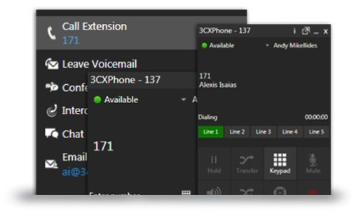 3CX comprend des clients pour smartphones et ordinateurs portables Mac ou Windows qui permettent aux utilisateurs d’utiliser leur extension de bureau de n’importe où, parfaitement intégrés comme s’ils étaient au bureau. Non seulement tous les appels au bureau sont gratuits, mais les employés peuvent tirer parti d’un seul numéro et faire une impression professionnelle.