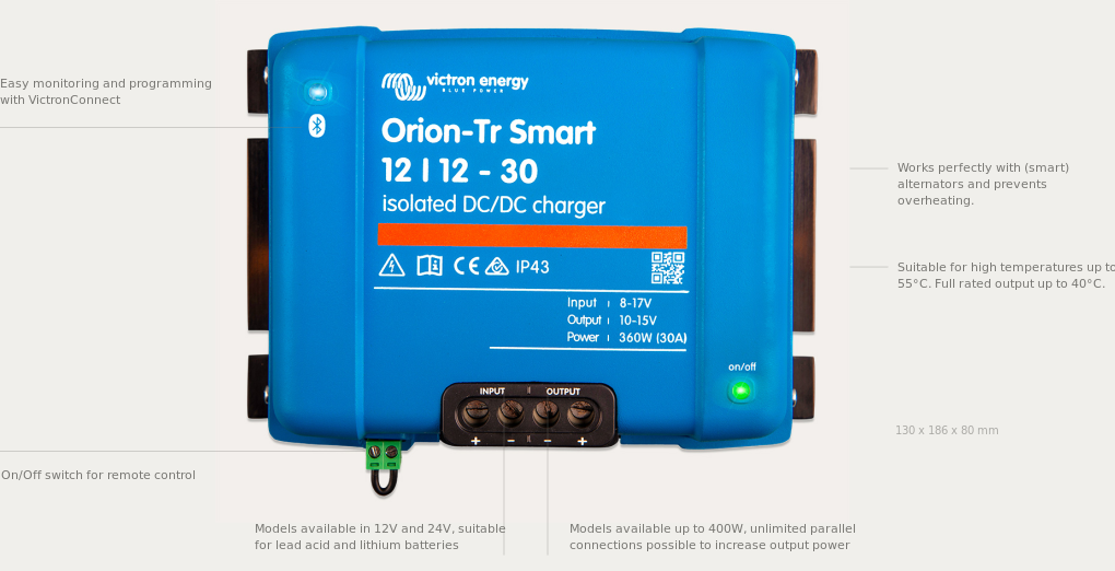 Les moteurs Euro 5/6 sont la nouvelle norme dans le parc automobile professionnel et ils sont équipés d’alternateurs intelligents (à tension variable), contrôlant la puissance en fonction des conditions d’utilisation du véhicule. Cela les rend inefficaces pour charger un système de batterie secondaire à un niveau utilisable. Notre large gamme de chargeurs CC-CC et de produits Smart BMS permet de charger correctement les batteries de service au plomb et au lithium, sans endommager l’alternateur intelligent ou les batteries. En réalité, avec Victron Energy, vous pouvez combiner en toute sécurité n’importe quel alternateur avec n’importe quelle batterie de service.